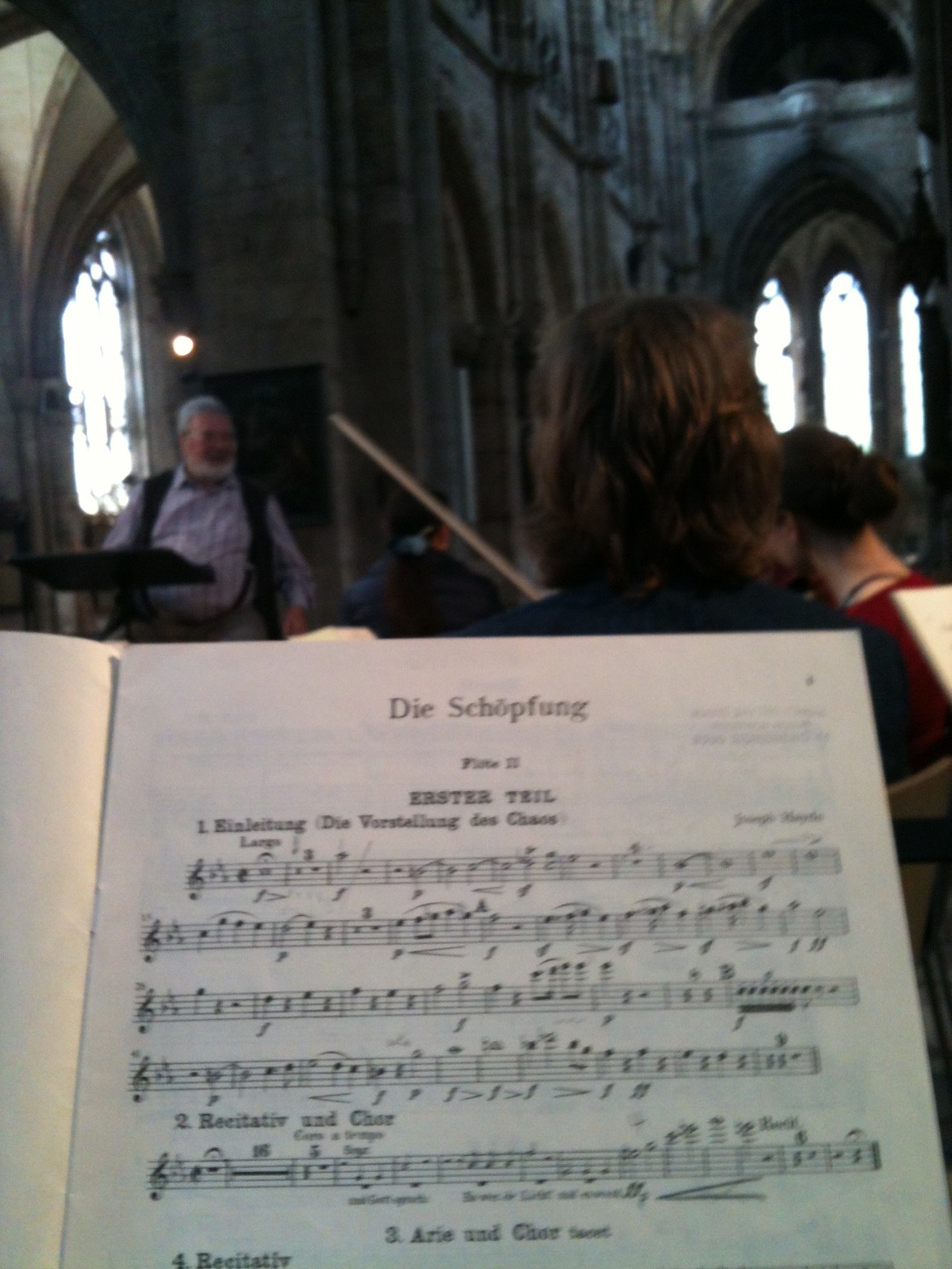コンサートの会場となる聖セバルト教会のすぐ隣に、地球上の全ての旅行本に絶対に載っている、すごく有名な焼きウィンナーのレストランがあって、一緒に行った同僚の若い女の子がお腹が空いたというので、リハーサルの前に入りました。