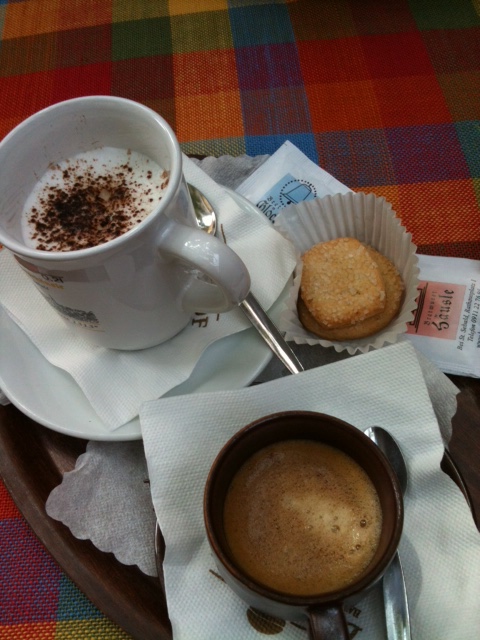 私はヴェジタリアンにも関わらず魚はたべるので、ニシンの塩漬けをいただきました。マヨネーズみたいなクリーム系のソースはいらないから、代わりにお醤油ないですか?って聞いたらウェイターさん本気で困惑してました。冗談のつもりだっったんですけど。こちら食後のコーヒー。